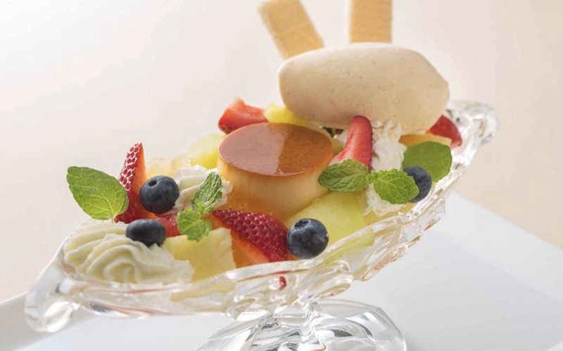 三重県の「コケコッコー共和国」の平飼い卵を使い、プリンアラモードを提供