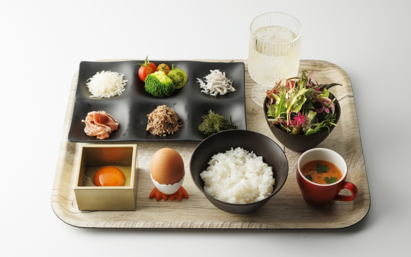 大人気朝食メニューの卵かけご飯に平飼い卵をご使用されています。生卵は、ダイレクトに卵のおいしさが伝わる食べ方です。ぜひ、清々しい湘南の朝に卵かけご飯を召し上がってみてください。